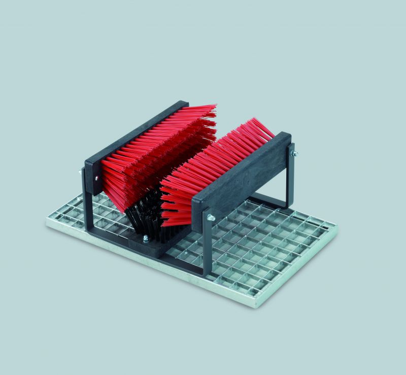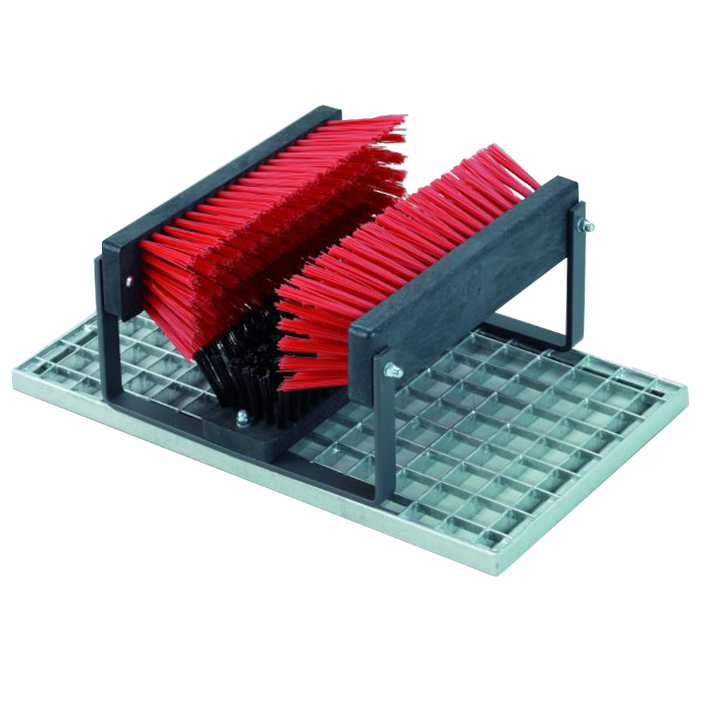 Aus verzinkten Stahl mit hochwertigen Bürsten für die Reinigung der Schuhe.