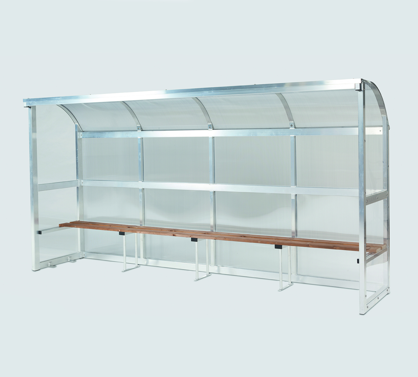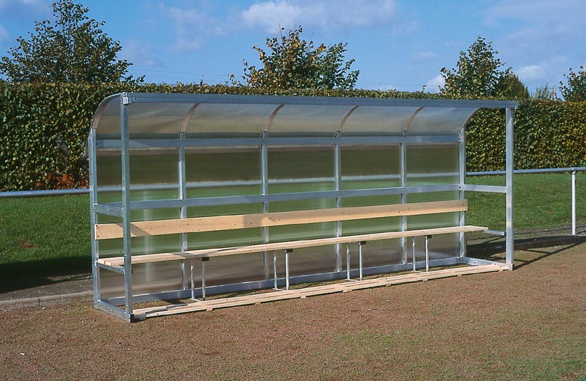 Diese Spielerbänke sind aufgrund der formschönen und äußerst stabilen Konstruktion bei allen Fußballvereinen sehr beliebt. Die runde Dachform ergibt ein elegantes Design.