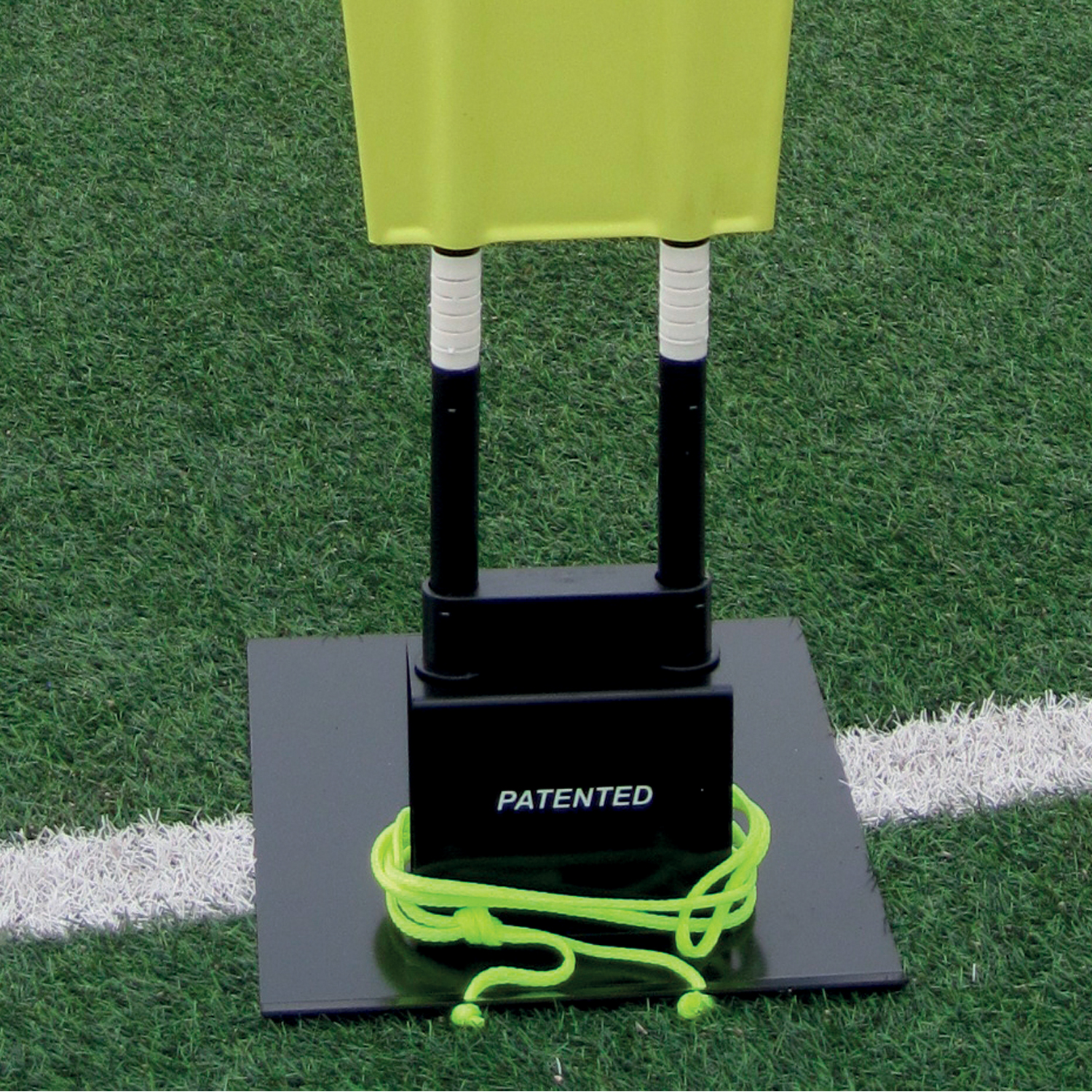 Mit diesem Standfuß können die Freistoß-Figuren einfach und schnell mit der Schnur am Fuß auf den gewünschten Standort gezogen werden.