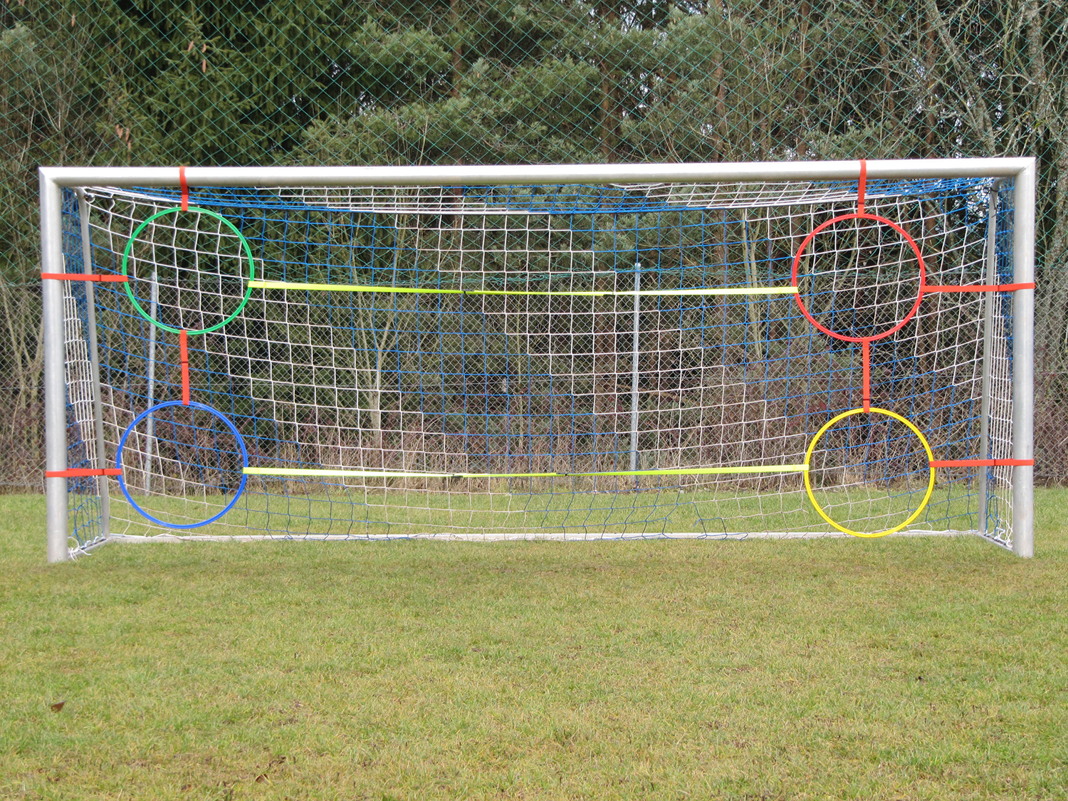 So ist es möglich, die Ringe in verschiedenen Bereichen des Tores zu Befestigen und so die Schusstechnik zu trainieren.
