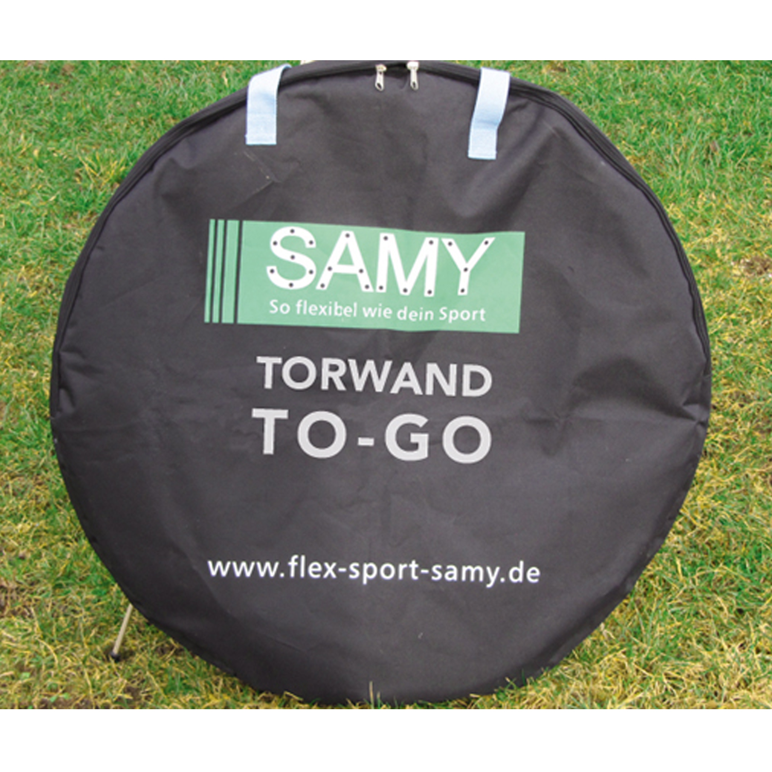 Die Torwand besteht aus 4 Kunststoffringen, an denen Spannbänder befestigt sind.