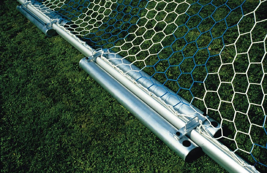 Doppeltank-Konstruktion, die über das hintere Bodenrohr gelegt wird. Damit wird ein sicherer Stand der Tore garantiert, die Tore sind gegen Umkippen gesichert.